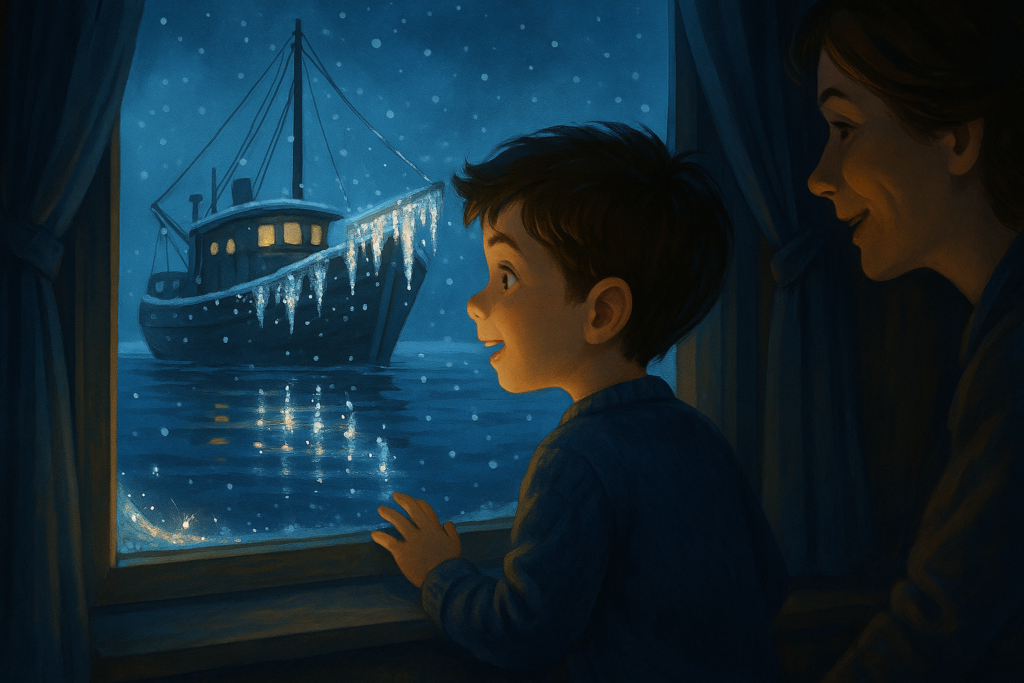 « Regarde, Maman ! s’exclame Léo émerveillé. Y’a des diamants sur le bateau !